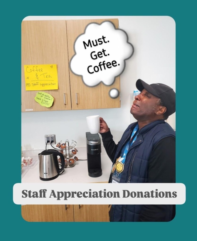 As a reminder, please do not drop off items for Staff Appreciation at random in the main office. There is limited storage for this program. Please contact Aly Buechler at alyloo3112@gmail.com for in-partnership donations.